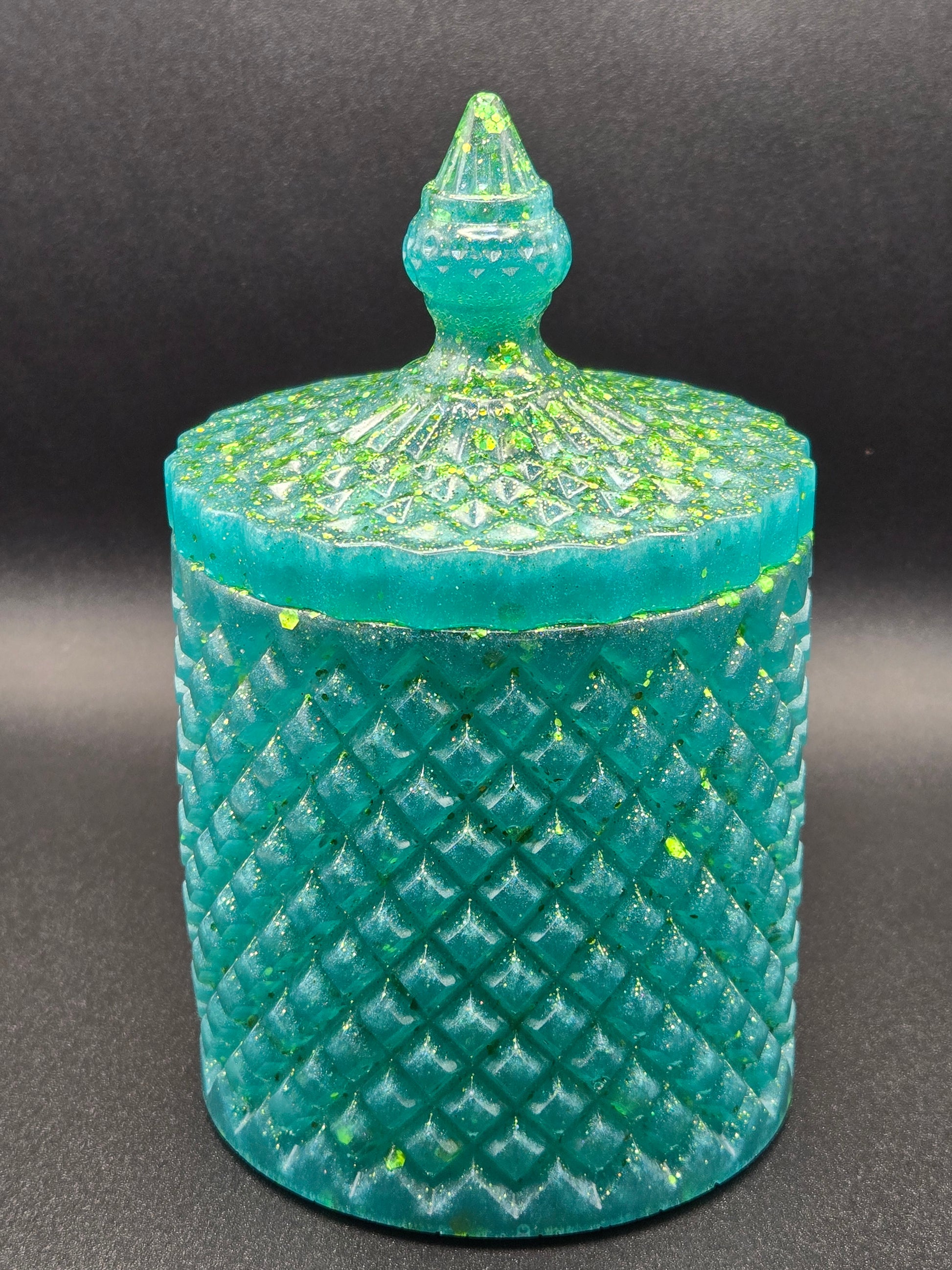 Luxe Emerald Resin Vanity Jar with Lid – Handmade Glam Container