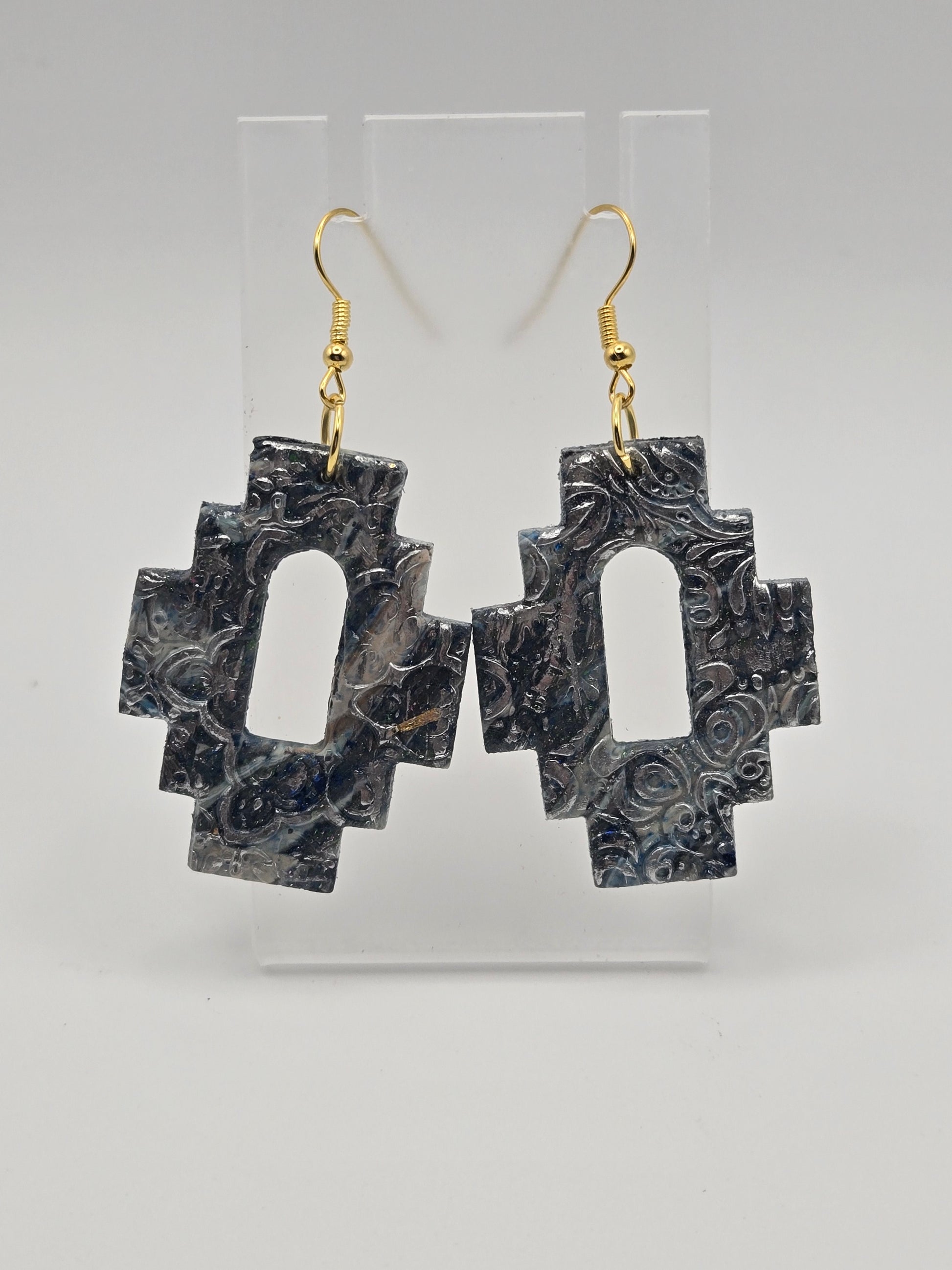 Channel bold energy with our Sacred Steps Statement Earrings. Inspired by Aztec motifs, these open geometric clay earrings feature embossed textures and a modern cut-out design.