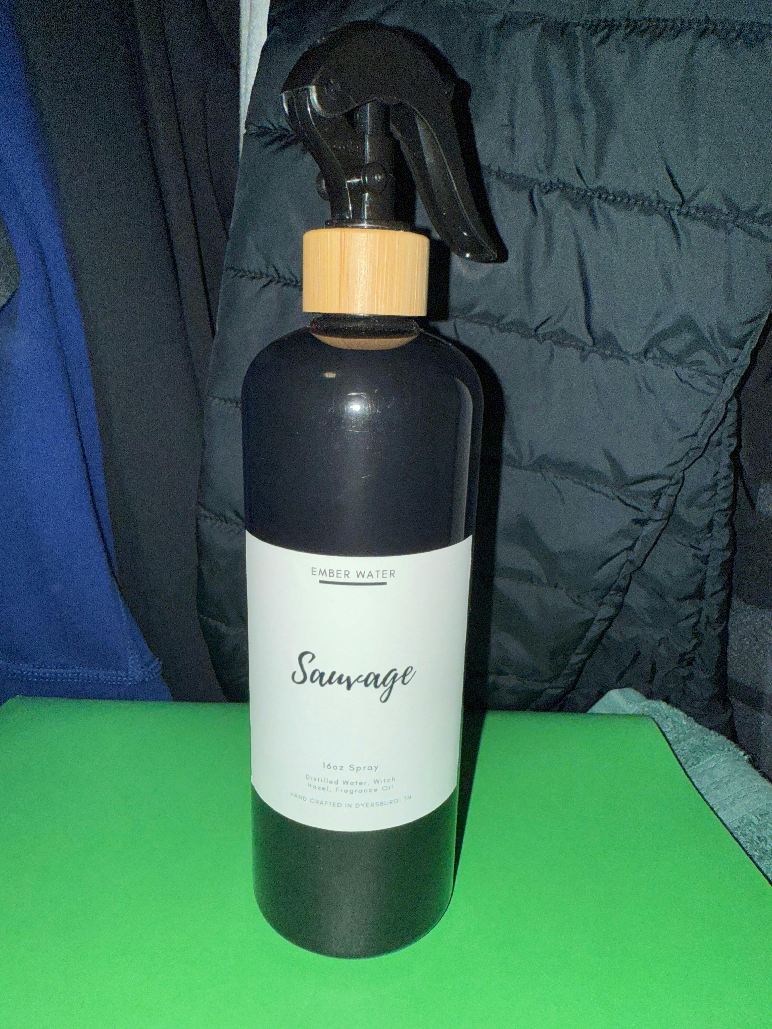 Elevate any space with our Sauvage Luxe Room + Linen Spray, handcrafted by Ember Water. This bold, alluring scent is inspired by Dior’s iconic fragrance and delivers an instant upgrade to your home, office, or car.